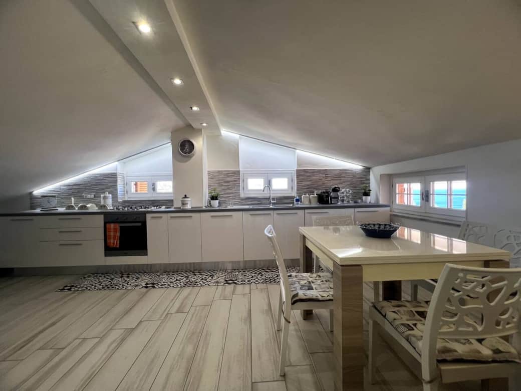 Mansarda luminosa con splendida vista sul mare del golfo di Soverato! Accogliente e moderna, con incluso parcheggio in corte privata. Perfetta per coppie o piccoli gruppi. Climatizzata, Smart TV con Netflix, cucina attrezzata, lavastoviglie, lavatrice e doppia camera da letto, una matrimoniale e una con letto alla francese. Bagno elegante con doccia anch'essa vista mare! A pochi minuti dalle spiagge e dal centro. Ideale per rilassarsi e godersi la Calabria!